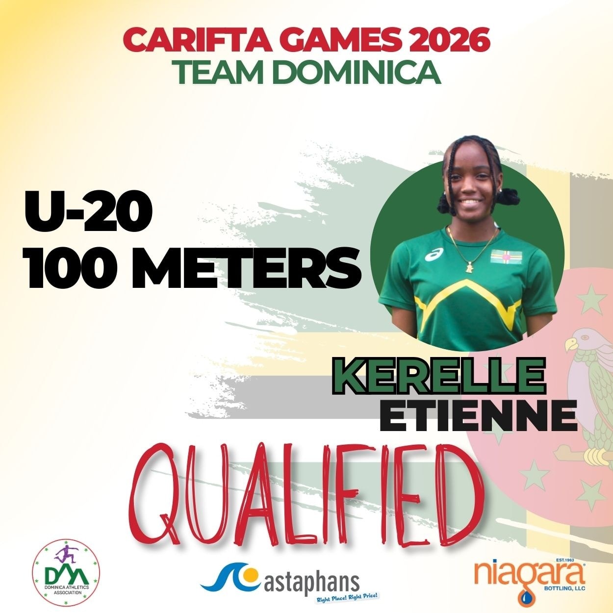Ettiene will now represent Dominica in the 100 meters event at the CARIFTA Games which are carded for April in Grenada.